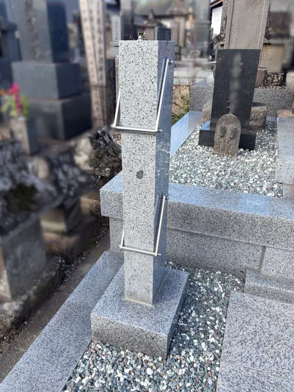 塔婆立は、以前のものは金具から出たサビが石についてしまっていたので、同じ塩山御影を使って新しく作り直しました。違和感のない仕上がりです。