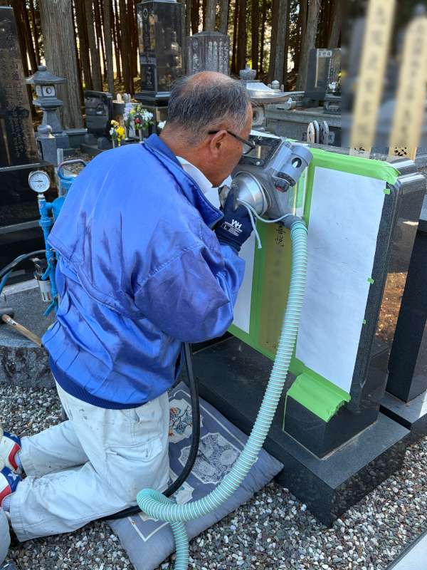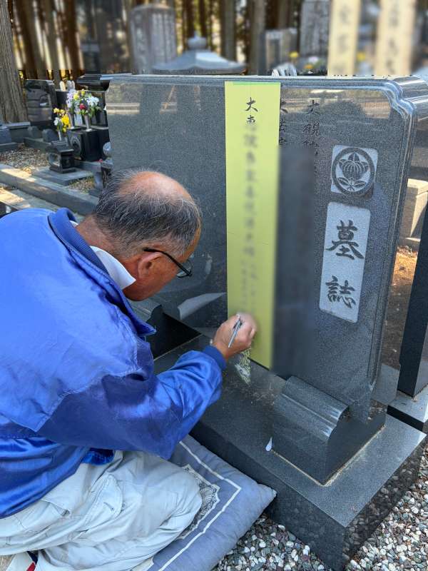 石塔の家名(正面の文字)や墓誌の戒名、水鉢などの家紋など、お墓の文字色を入れなおします。当店で建立されていないお墓でも対応できます。